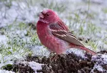 北朱雀,是燕雀科朱雀属鸟类。雄鸟额和头顶前部珠白色具窄的粉红色羽缘,在头顶前部形成极明显的银白色鳞状斑,头顶后部、枕、头侧和后颈粉红色。背、肩灰褐色,腰和尾上覆羽为鲜亮的粉红色无黑褐色纵纹,腹中央白色。…全部>>