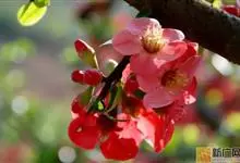 贴梗海棠Nakai)是蔷薇科、木瓜海棠属植物。落叶灌木,高达2米,枝条直立开展,有刺。叶片卵形至椭圆形,稀长椭圆形,长3-9厘米,宽1.5-5厘米。花先叶开放,3-5朵簇生于二年生老枝上。…全部>>