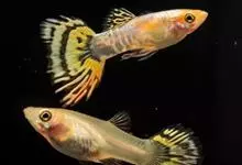 孔雀鱼,是鳉形目花鳉科花鳉属鱼类。孔雀鱼体形修长,其形态变化主要在尾鳍,常见的尾鳍形态有圆尾、尖尾、铲尾等。雌、雄鱼差别明显,雄鱼的大小只有雌鱼的一半左右,雄鱼体色丰富多彩,尾部形状千姿百态。…全部>>