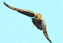 普通鵟:是鹰科、鵟属鸟类,属中型猛禽。体长54厘米,翼展122-137厘米,体重515-810克。体色变化较大,上体主要为暗褐色,下体主要为暗褐色或淡褐色,具深棕色横斑或纵纹,尾淡灰褐色,…全部>>