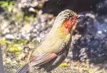 红翅薮鹛是噪眉科、薮鹛属中型鸟类,体长21-24厘米。头顶灰褐色,头侧和颈侧赤红色,上体橄榄褐色,翅上具红色块斑,尾具红色或橙黄色块斑,下体灰色沾褐。虹膜褐色或红色,嘴黑色,脚暗褐色或淡灰褐色。…全部>>