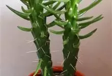 金刚纂,是大戟科大戟属的肉质灌木状小乔木。茎圆柱状,上部多分枝,叶片互生,少而稀疏,顶端钝圆,基部渐狭;花序二歧状腋生,苞叶膜质,总苞阔钟状,裂片半圆形,边缘具缘毛,雄花多枚;花期6-9月。…全部>>