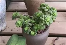筒叶花月,是景天科青锁龙属的多年生草本植物。植株多分株,灌木状,茎较粗壮,圆柱形,表皮灰褐色;叶片肉质,互生,呈圆筒状,簇生于茎或分枝顶端,叶端呈斜截形,截面为椭圆形;花呈星状,淡白色;花期秋季。…全部>>
