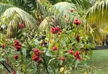 红木是红木科红木属常绿灌木或小乔木,高可达10米,叶片心状卵形或三角状卵形,叶柄长2.5~5厘米,无毛;圆锥花序顶生,花序梗粗壮,萼片和花瓣倒卵形;蒴果近球形或卵圆形,密生栗褐色长刺;种子卵圆形,…全部>>