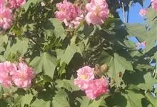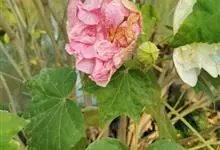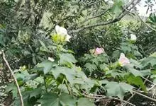 木芙蓉,锦葵科木槿属落叶灌木或小乔木。小枝上有细绒毛;叶片为卵状心形,托叶为披针形,常早落;花单生,花萼为钟形,花冠初为白色或淡红色,后逐渐变为深红色;果实为扁球形,有淡黄色的毛附着。花期8到10月。…全部>>
