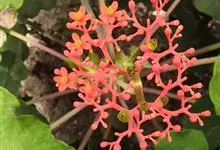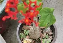 佛肚树是大戟科麻风树属的直立灌木。株高可达1.5米;茎基部或下部通常膨大呈瓶状;枝条粗短,具散生突起皮孔;叶盾状着生,近圆形或宽椭圆形,先端圆钝,基部平截或钝圆,托叶分裂呈刺状,宿存;花序顶生,…全部>>
