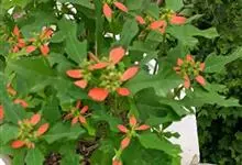 猩猩草:常绿或半常绿灌木,盆栽时株高0.5米-2米,在亚热带地区可长到6米以上。茎直立而光滑,单叶互生,卵状椭圆形至阔披针形,具不规则的深缺刻。长10-15厘米。花小,有蜜腺,排列成密集的伞房花序。…全部>>