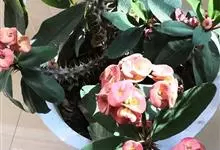 虎刺梅:别称铁海棠,是蔓生灌木植物。茎多分枝,长60-100厘米,直径5-10毫米,具纵棱,密生硬而尖的锥状刺,刺长1-1.5厘米,直径0.5-1.0 毫米,常呈3-5列排列于棱脊上,呈旋转。叶互生…全部>>
