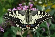 金凤蝶,是鳞翅目凤蝶科凤蝶属动物。金凤蝶为中型凤蝶,翅展70-84毫米,翅背面底色黑褐色,翅脉黑色,翅室具黄斑;前翅背面基部呈暗黄色,亚外缘为黑色,内具一列小黄斑;后翅背面亚外缘区具黑宽边,…全部>>