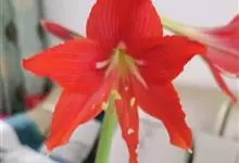 朱顶红 H. E. Moore),石蒜科属多年生草本植物,鳞茎近球形,并有匍匐枝;叶鲜绿色,带形;花茎中空,稍扁,具有白粉,圆筒状,花被裂片长圆形,顶端尖,红色,略带紫色;花丝红色,…全部>>