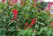 一串红,又称爆仗红、象牙红,为唇形科鼠尾草属植物。花序修长,色红鲜艳,花期又长,适应性强,为中国城市和园林中最普遍栽培的草本花卉。原产巴西、南美洲。喜温暖和阳光充足环境。不耐寒,耐半阴,忌霜雪和高温,…全部>>