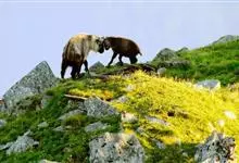 北山羊是偶蹄目牛科山羊属哺乳动物,别名悬羊、野山羊、红羊等。体形较大,形似家山羊。夏毛棕黄色,腹部及四肢内侧白色,冬毛长而色浅淡,雄性颌下有须。四肢稍短,蹄子狭窄。雄、雌均有角,但雄性角长、大,…全部>>