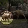 羚牛,偶蹄目牛科羚牛属哺乳动物,俗称扭角羚、野山牛、盘羊。其体形粗壮。尾短。吻鼻部隆起且裸露。前额隆起,毛短而蓬松。角基粗,由头顶长出后先向上升起,又突然翻转,靠近头部,复向外伸,然后又向后弯转,…全部>>