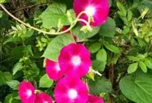 五爪金龙 Sweet),旋花科番薯属多年生缠绕草本植物。茎细长,有细棱;叶片为掌状;花冠紫红色、紫色或淡红色、偶有白色,漏斗状;蒴果近球形。花期5~12月。五爪金龙的叶子类似掌状,有5至7个裂痕,…全部>>