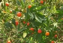 珊瑚樱是茄科茄属植物。株高达2米;植株无毛;叶窄长圆形或披针形,长1-6厘米,基部窄楔形下延,全缘或波状,侧脉4-7对;叶柄长2-5毫米;花单生,稀双生或成短总状花序与叶对生或腋外生,…全部>>