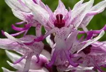 意大利红门兰,也称裸男兰、意大利男人兰,为兰科红门兰属的一种,植株高20-50厘米,花顶生,为发白的粉红色或紫色,花被片为头盔状,有暗色条纹,整朵花的造型就像一个戴着草帽的裸体男人。蒴果直立,…全部>>