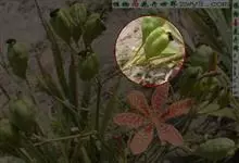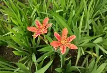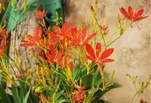 射干 Redouté)是鸢尾科射干属多年生草本植物。根状茎为不规则的块状,斜黄色或黄褐色;花橙红色,散生紫褐色的斑点;花药呈条形;子房下位,倒卵形;蒴果倒卵形或长椭圆形;种子圆球形,黑紫色,有光泽。…全部>>