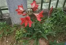 朱顶红 H. E. Moore),石蒜科属多年生草本植物,鳞茎近球形,并有匍匐枝;叶鲜绿色,带形;花茎中空,稍扁,具有白粉,圆筒状,花被裂片长圆形,顶端尖,红色,略带紫色;花丝红色,…全部>>