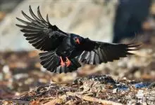 红嘴山鸦,是脊索动物门鸟纲雀形目鸦科鸟类。红嘴山鸦的成鸟通体羽毛纯黑色具有蓝色金属光泽,翼和尾泛有蓝绿色金属光泽;虹膜暗褐色,喙较为尖细,并且呈镰状下弯,喙和脚朱红色。…全部>>