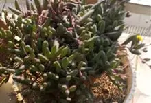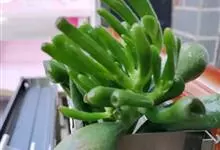 筒叶花月,是景天科青锁龙属的多年生草本植物。植株多分株,灌木状,茎较粗壮,圆柱形,表皮灰褐色;叶片肉质,互生,呈圆筒状,簇生于茎或分枝顶端,叶端呈斜截形,截面为椭圆形;花呈星状,淡白色;花期秋季。…全部>>