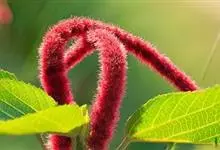 红穗铁苋菜:为大戟科、铁苋菜属植物,灌木,高0.5-3米。嫩枝被灰色短绒毛,毛逐渐脱落,小枝无毛。 花序色泽鲜艳,葇荑花序下垂,如狐狸尾状,雌花近卵形,长约0.8毫米,顶端急尖,具短毛;子房近球形,…全部>>