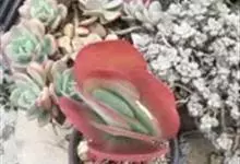 唐印为景天科伽蓝菜属的多年生肉质草本植物。植株中型,株高50厘米,宽20厘米,多分枝;叶片肉质,对生,卵形,全缘,先端钝圆,叶片淡绿色至灰绿色,表面被有厚厚的白粉,光照充足时,叶缘呈红色;圆锥花序,…全部>>