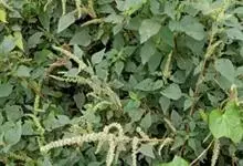 反枝苋是苋科苋属的一年生草本植物。株高达1米;茎密被柔毛;叶菱状卵形或椭圆状卵形,先端锐尖或尖凹,两面及边缘被柔毛,下面毛较密;穗状圆锥花序,顶生花穗较侧生者长;花被片长圆形或长圆状倒卵形,…全部>>