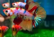 孔雀花鳉 ,俗名孔雀鱼,也称为凤尾鱼、彩虹花鳉、虹鳉、古比鱼等,是花鳉科花鳉属的一种热带鱼,雌雄鱼的体型和色彩差别较大,成年雄鱼身体瘦小,体长3-4厘米,体色绚烂多彩、体型优美;成年雌鱼体长5厘米…全部>>