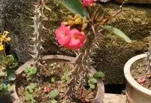 虎刺梅:别称铁海棠,是蔓生灌木植物。茎多分枝,长60-100厘米,直径5-10毫米,具纵棱,密生硬而尖的锥状刺,刺长1-1.5厘米,直径0.5-1.0 毫米,常呈3-5列排列于棱脊上,呈旋转。叶互生…全部>>