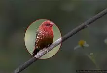 红梅花雀小型鸟类,体长9-10厘米。雄鸟通体朱红色,背、肩、胸等满布白色小斑点,两翅和尾黑褐色均具白色端斑,嘴红色,脚蜡黄色。雌鸟上体淡褐色或赭褐色,翅上中覆羽、大覆羽和内侧飞羽末端具白色斑点,…全部>>