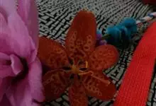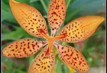 射干 Redouté)是鸢尾科射干属多年生草本植物。根状茎为不规则的块状,斜黄色或黄褐色;花橙红色,散生紫褐色的斑点;花药呈条形;子房下位,倒卵形;蒴果倒卵形或长椭圆形;种子圆球形,黑紫色,有光泽。…全部>>