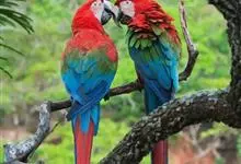 红绿金刚鹦鹉:是鹦鹉科、金刚鹦鹉属的大型攀禽。体长90-95厘米,翼展125厘米,体重1050-1700克,寿命80年。成鸟的头、颈部、胸部和翕两侧是美丽的红色羽毛。肩和三级飞羽绿色。背部,…全部>>