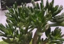 筒叶花月,是景天科青锁龙属的多年生草本植物。植株多分株,灌木状,茎较粗壮,圆柱形,表皮灰褐色;叶片肉质,互生,呈圆筒状,簇生于茎或分枝顶端,叶端呈斜截形,截面为椭圆形;花呈星状,淡白色;花期秋季。…全部>>