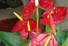 花烛,别名红鹅掌、红掌、安祖花等,为天南星科花烛属的一种多年生草本植物。其茎矮;叶互生,叶片革质,有光泽,阔心形、圆心形,先端钝或渐尖,基部深心形;肉穗花序有细长花序梗,佛焰苞深红色或橘红色,…全部>>