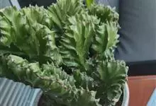 麒麟掌,是大戟科大戟属多年生植物。为金刚纂的带化变异变种。麒麟掌的株乳汁丰富;它的茎圆柱状,上部多分枝,绿色;叶互生,稀少,常生于嫩枝顶端脊上,倒卵形、倒卵状长圆形或匙形,顶端钝圆,具小凸尖,全缘,…全部>>