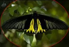 金裳凤蝶是凤蝶科、裳凤蝶属的动物。金裳凤蝶身体呈黑色,头、颈和胸侧有红毛,腹部有黑黄两色相间条纹,雄蝶前翅黑色,具黑天鹅绒光泽,各脉两侧灰白色,后翅金黄色,各室外缘有等腰三角形黑斑1枚,斑内侧有晕,…全部>>