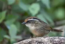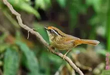褐胁雀鹛,是莺科、雀鹛属的鸟类。褐胁雀鹛是小型鸟类,体长13-15厘米。头顶棕褐色,黑色侧冠纹和宽阔的白色眉纹,眼先黑色。上体包括两翅和尾橄榄褐色。颏、喉、胸、腹白色,腹和胸沾皮黄色,两胁橄榄褐色,…全部>>