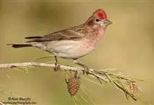 红眉朱雀:体长15厘米,是一种中等体型的朱雀。上体褐色斑驳,眉纹、脸颊、胸及腰淡紫粉,臀近白。雌鸟无粉色,但具明显的皮黄色眉纹。雄雌两性均甚似体型较小的曙红朱雀,但嘴较粗厚且尾的比例较长。…全部>>