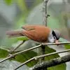 点胸鸦雀是莺科、鸦雀属小型鸟类,体长18-21厘米。头顶至枕橙棕色,嘴橙黄色、短而粗厚,脸皮黄色,耳覆羽和颊后部黑色,眼圈白色。上体棕褐色。颏黑色,其余下体淡皮黄白色,喉和上胸具黑色矢状斑。…全部>>