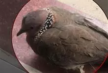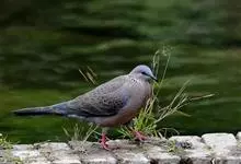 珠颈斑鸠,别名花斑鸠、珍珠鸠、花脖斑鸠、鸪鹪,是鸠鸽科副斑鸠属鸟类。体型中等,体长27~34cm,体重120~205g,雌鸟和雄鸟羽色相似,但雌鸟不如雄鸟羽色亮泽。珠颈斑鸠前额至头顶羽色稍淡,…全部>>