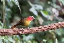 红翅薮鹛是噪眉科、薮鹛属中型鸟类,体长21-24厘米。头顶灰褐色,头侧和颈侧赤红色,上体橄榄褐色,翅上具红色块斑,尾具红色或橙黄色块斑,下体灰色沾褐。虹膜褐色或红色,嘴黑色,脚暗褐色或淡灰褐色。…全部>>