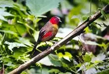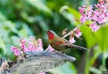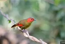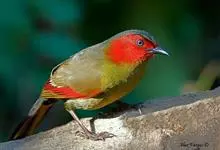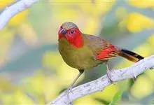 红翅薮鹛是噪眉科、薮鹛属中型鸟类,体长21-24厘米。头顶灰褐色,头侧和颈侧赤红色,上体橄榄褐色,翅上具红色块斑,尾具红色或橙黄色块斑,下体灰色沾褐。虹膜褐色或红色,嘴黑色,脚暗褐色或淡灰褐色。…全部>>