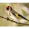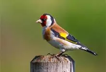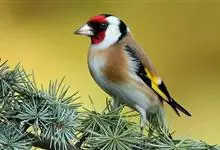 红额金翅雀:共有14个亚种。小型鸟类,体长12-14厘米。额、脸颊和颏朱红色,眼先和眼周黑色,在淡色的头部极为醒目。上体灰褐或乌褐色,尾上覆羽白色,两翅和尾黑色,翅上有黄色斑。下体喉、胸灰褐或乌褐色…全部>>