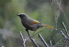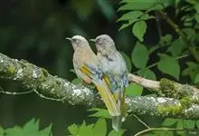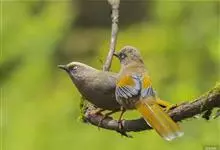 橙翅噪鹛:是噪鹛科、彩翼噪鹛属的中型鸟类,体长22-25厘米。头顶深葡萄灰色或沙褐色。上体灰橄榄褐色,外侧飞羽外翈蓝灰色、基部橙黄色,中央尾羽灰褐色,外侧尾羽外翈绿色而缘以橙黄色并具白色端斑。…全部>>