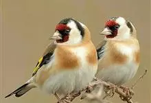 红额金翅雀:共有14个亚种。小型鸟类,体长12-14厘米。额、脸颊和颏朱红色,眼先和眼周黑色,在淡色的头部极为醒目。上体灰褐或乌褐色,尾上覆羽白色,两翅和尾黑色,翅上有黄色斑。下体喉、胸灰褐或乌褐色…全部>>