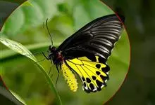 金裳凤蝶是凤蝶科、裳凤蝶属的动物。金裳凤蝶身体呈黑色,头、颈和胸侧有红毛,腹部有黑黄两色相间条纹,雄蝶前翅黑色,具黑天鹅绒光泽,各脉两侧灰白色,后翅金黄色,各室外缘有等腰三角形黑斑1枚,斑内侧有晕,…全部>>