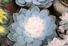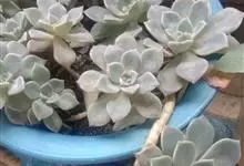 蓝石莲是景天科、拟石莲花属的多肉植物。茎部粗壮,成熟植株茎部木质化。叶片莲座型密集排列,株径不会很大,叶片相对较薄,常年绿色,表面布有白色粉末,中部凹陷,呈倒水滴状。叶尖较尖,叶缘光滑无褶皱,…全部>>
