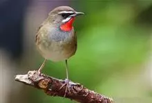 红点颏:是鸟纲、鹟科的鸣禽。又名西伯利亚歌鸲。体长14-17厘米,体重16-27克。雄鸟头部、上体主要为橄榄褐色。眉纹白色。颏部、喉部红色,周围有黑色狭纹。胸部灰色,腹部白色。雌鸟颏部、喉部不呈赤红色,…全部>>