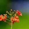 洋金凤 Sw.),豆科小凤花属灌木状或小乔木植物,枝无毛,绿或粉绿色;二回羽状复叶;总状花序伞房状,萼片无毛,花瓣橙红或黄色,圆形,花丝红色,子房无毛,花柱橙黄色;荚果窄而薄,…全部>>