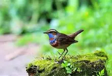 蓝点颏亦称“蓝喉歌鸲”,通称蓝靛颏儿。身体大小和麻雀相似,体长12-13厘米,体重17-18克。头部、上体主要为土褐色。眉纹白色。尾羽黑褐色,基部栗红色。颏部、喉部辉蓝色,下面有黑色横纹。下体白色。…全部>>